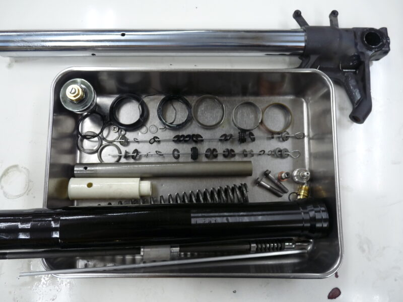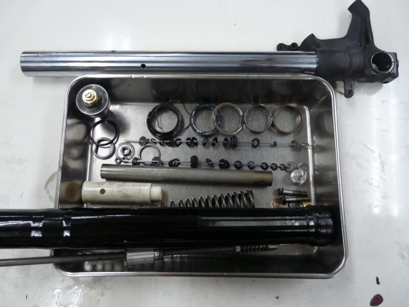 今回は純正フロントフォークのフルメンテナンスをご依頼いただきました。スクーデリアオクムラでは、B-KING純正前後サスペンションのフルメンテナンス、MEダンピングチューニングによるセットアップが可能です。