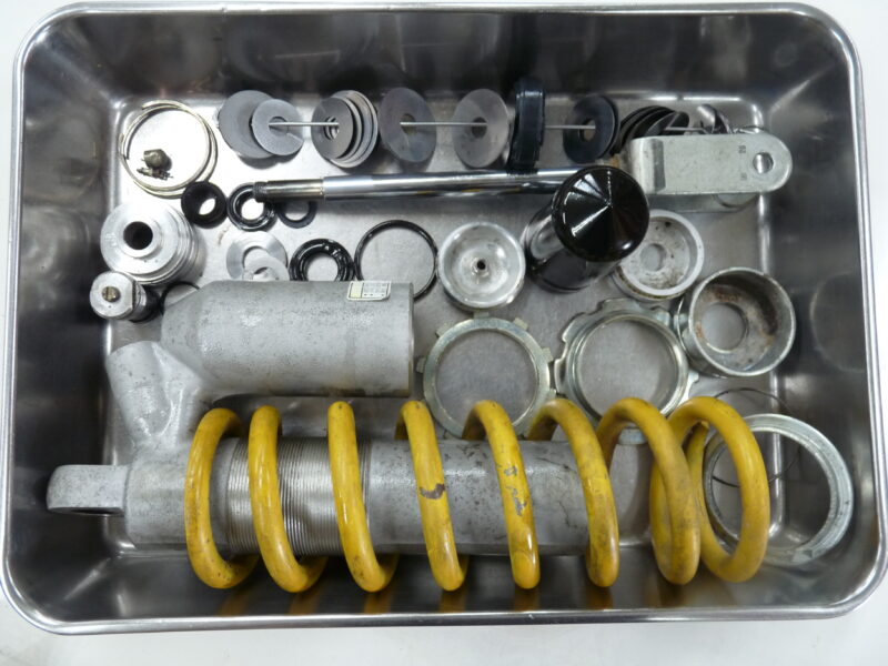 今回はリヤショックのフルメンテナンスをご依頼いただきました。傷んでいたブラダとバンプラバーを交換して、新品時を上回るパフォーマンスに蘇りました。スクーデリアオクムラはオフロードモデルのサスペンションも幅広く扱っています。モタード仕様へのセットアップもお受けいたします。
