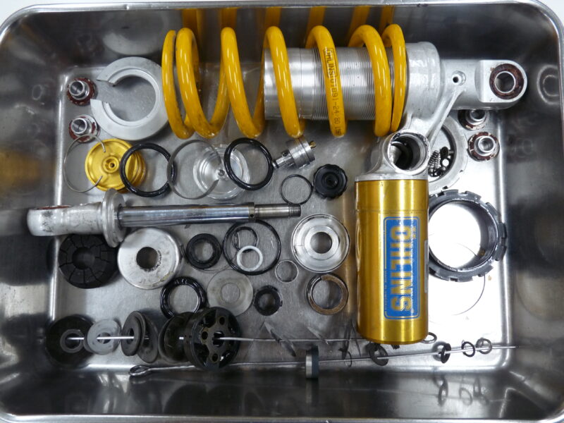 今回は、お客さまがアップハンドル仕様にモディファイされた1098Sの重量バランスを整え、1098Sをコンフォートに楽しんでいただけるようOHLINS前後サスペンションをMEダンピングチューニングによってセットアップいたしました。