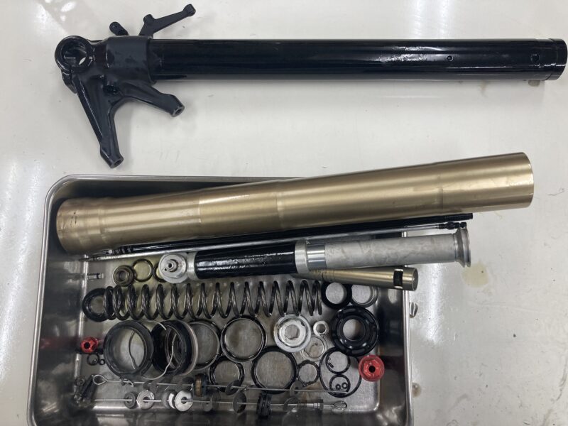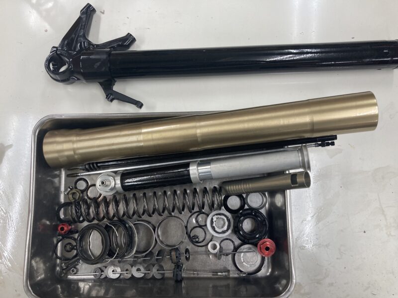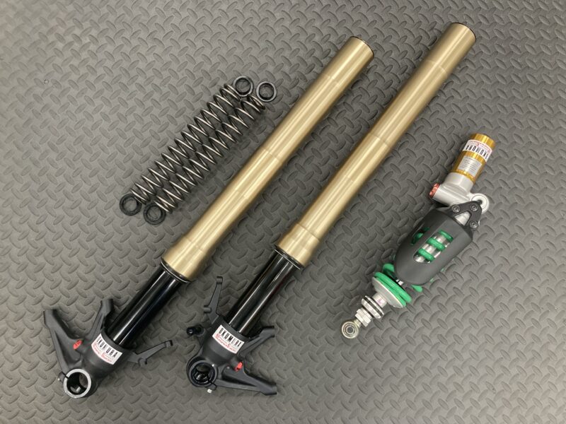 今回はマルゾッキ製フロントフォークと、SACHS製リヤショックのMEダンピングチューニングによるセットアップをご依頼いただきました。フロントフォークには、マルゾッキφ50専用設計のMEスーパースポーツスプリング0.90kgf/mを採用。