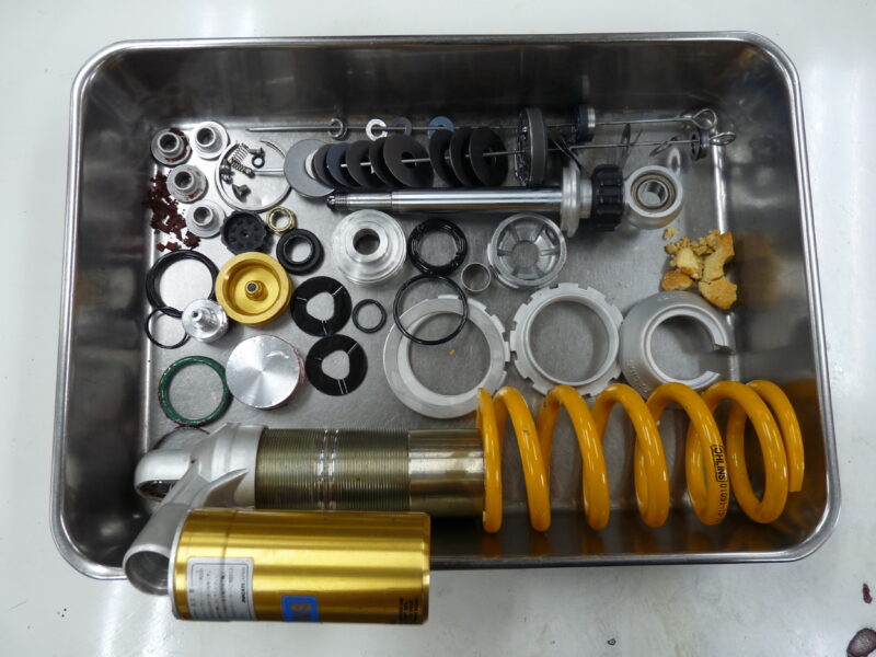 今回はOHLINS製リヤショックのフルメンテナンスをご依頼いただきました。