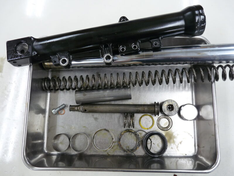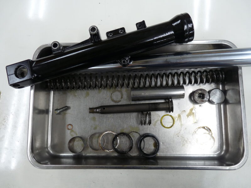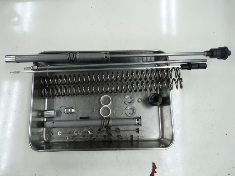 今回はKYB製インナーパイプ径φ41正立フロントフォークにMEインナーカートリッジキットの組み込みによるによるセットアップをご依頼いただきました。