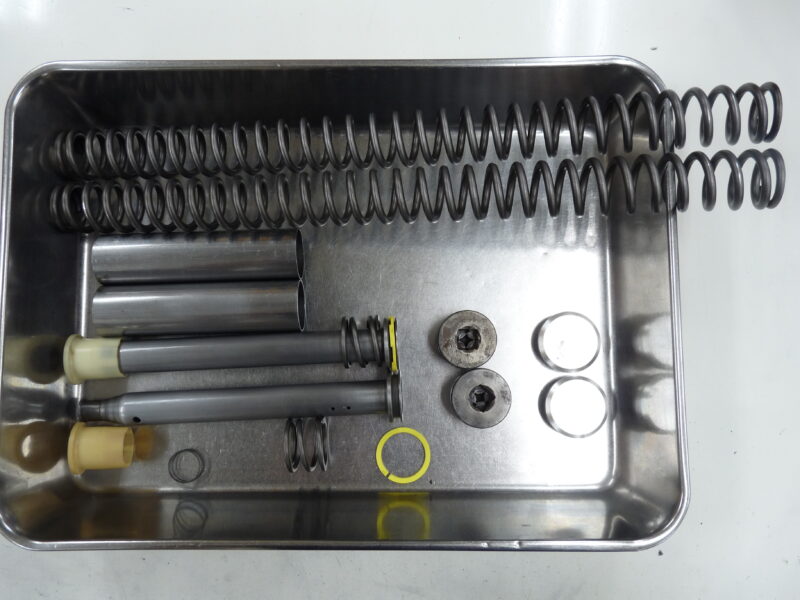 MEインナーカートリッジキットの組み込みによるセットアップ(KYB):¥165,000-(フルメンテナンスを含みます。スプリングプリロード、伸び側ダンピング調整機能が追加されます。)