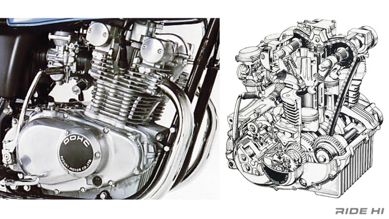 初の4サイクルエンジンということでさまざまな苦労を重ねながら、「全負荷連続2万km耐久テスト」をクリアの後、空冷2気筒、DOHC2バルブエンジンを搭載したGS400は、目標のパーフォーマンスと充分な耐久性を身に着けました。そのノウハウは後に続くGSXへの展開につながっていきます。