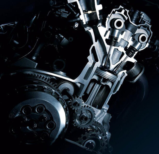 GSX-R1000はそれまでGSX-R750から継がれたエンジンを改良し、それに合わせて車体を造る手法でした。