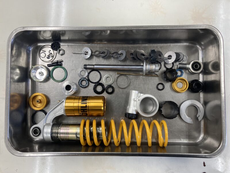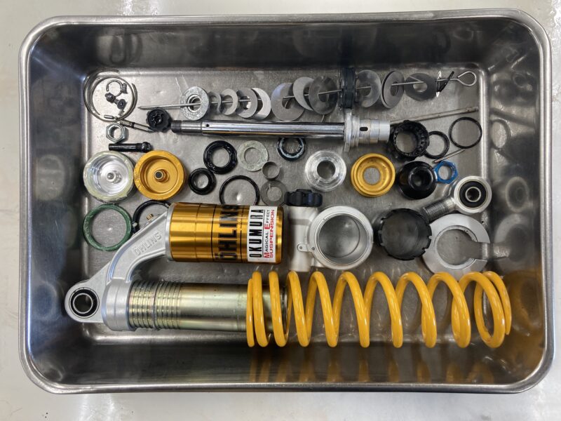 今回は2019年に前後サスペンションにMEダンピングチューニング+コーティングによって、セットアップをご依頼いただいたお客さまより2回目のフルメンテナンスをご依頼いただきました。これまでのデータは全て保管、管理しています。お気に入りのバイクを永くベストなコンディションでお乗りいただくために、スクーデリアオクムラがお手伝いさせていただきます。