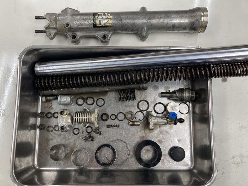 GSX750S(1982モデル)フロントフォークのMEダンピングチューニングによるセットアップが完了いたしました。
