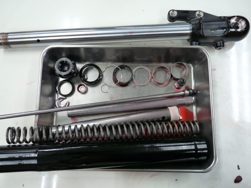 Harley Davidson FXLRST(2024モデル)フロントフォークのフルメンテナンス+OHLINSキットの組み込みが完了いたしました。