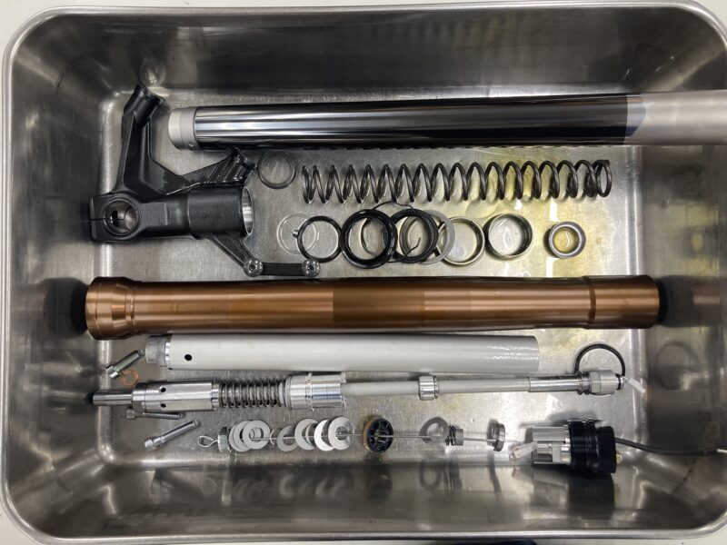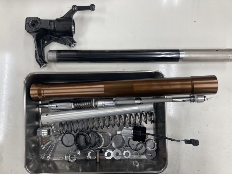 今回はフロントフォーク・インナーパイプとリヤショック・ダンパーロッドにME DLCコーティング、フロントフォーク・アウターパイプに