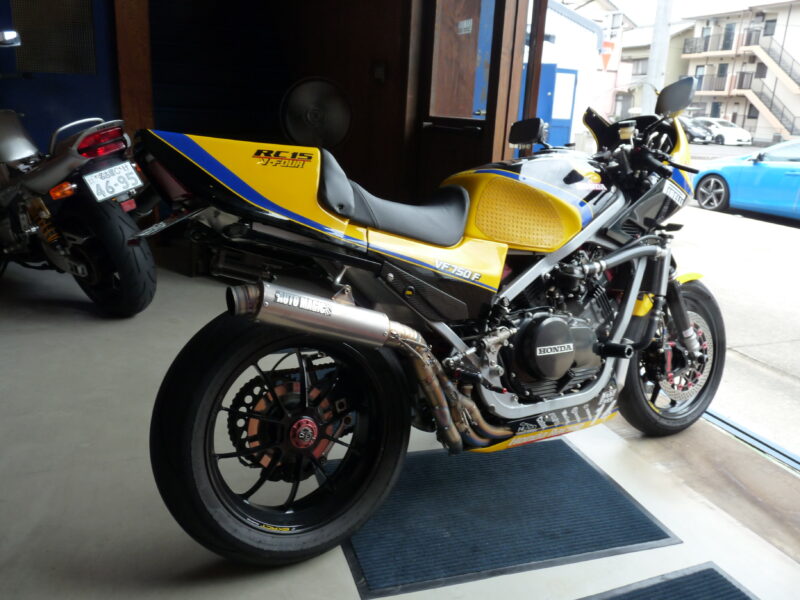 スイングアームを含むリヤ周りは、VF750R(RC30)のパーツを移植するなど相当なカスタムレベルです。