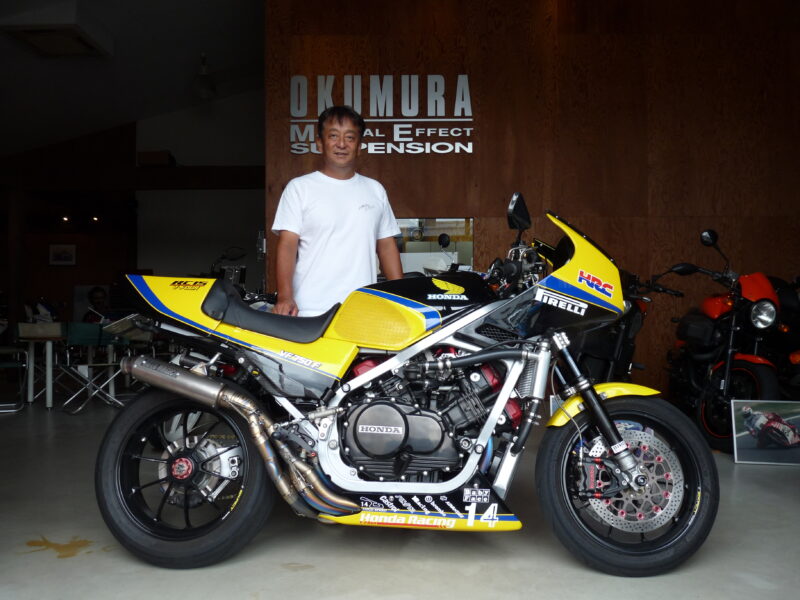 今回は、このVF750Fをベースにしたカスタムマシンの前後サスペンションのMEダンピングチューニングによるセットアップをご依頼いただきました。