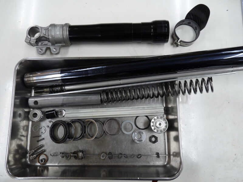 VF750F(1985モデル)前後サスペンションのMEダンピングチューニングによるセットアップが完了いたしました。