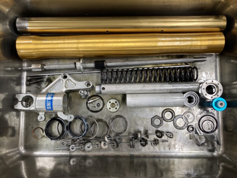 今回は純正装着のOHLINS前後サスペンションのフルメンテナンスをご依頼いただきました。