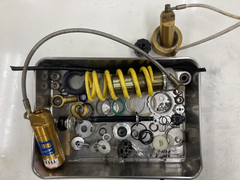 今回は750F1に装着されたOHLINSリヤショックのフルメンテナンスをご依頼いただきました。