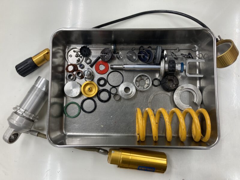 今回はbito KYBφ41のフロントフォークに、MEダンピングチューニング+0.85kgf/mのMEスーパースポーツスプリングでのセットアップと、MEダンピングチューニング済みのOHLINSリヤショックは、フルメンテナンスをご依頼いただきました。