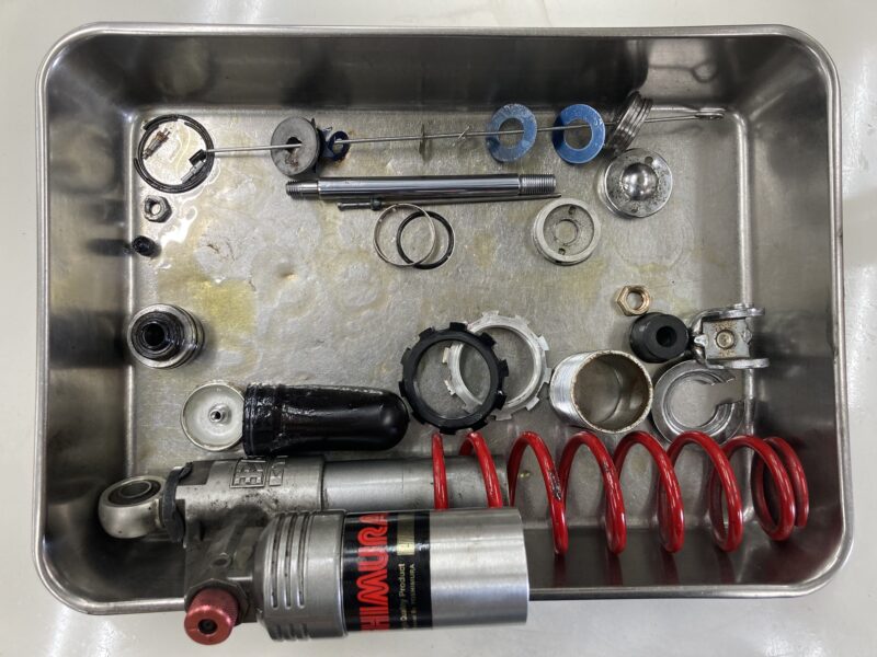 このタイプの「YOSHIMURA=KYB」リヤショックはフルメンテナンスが可能です