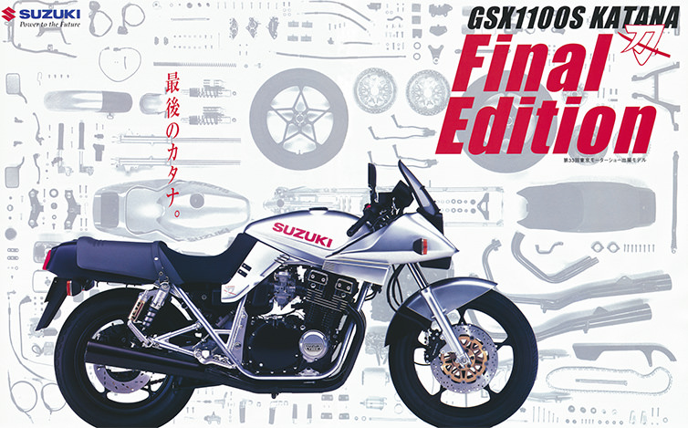 ファイナルモデルになるGSX1100S FINAL EDITIONです。排気量にちなんで1100台限定で発売されました。瞬時に完売してしまい、2倍払っても入手困難な状態とのです。