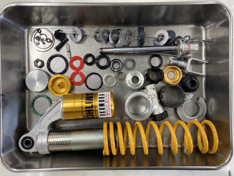 今回はリヤショックにOHLINSを装着されているお客さまより、定期的なフルメンテナンスのご依頼をいただきました。