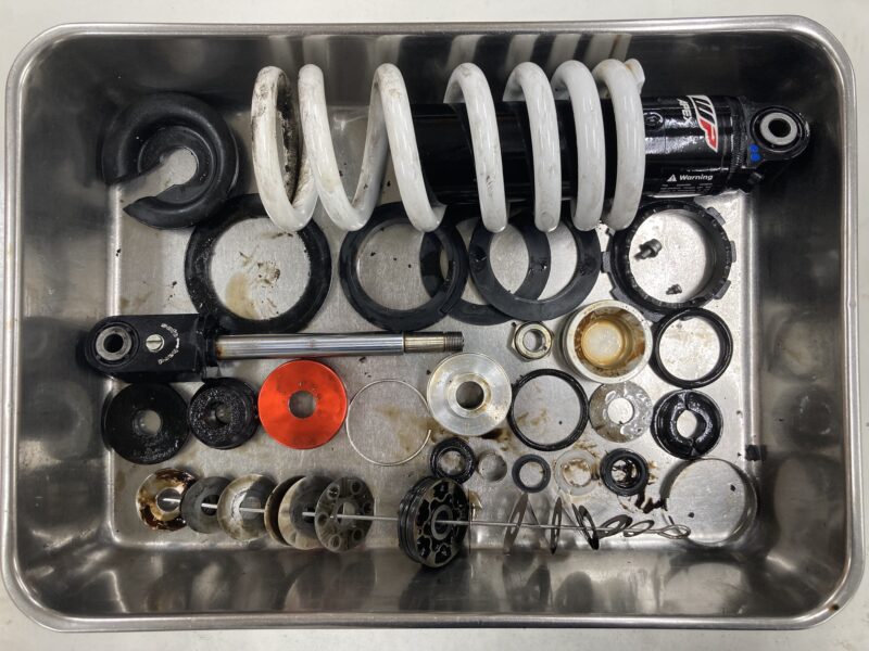 今回は純正採用されているWP(ホワイトパワー)製リヤショックのフルメンテナンスをご依頼いただきました。