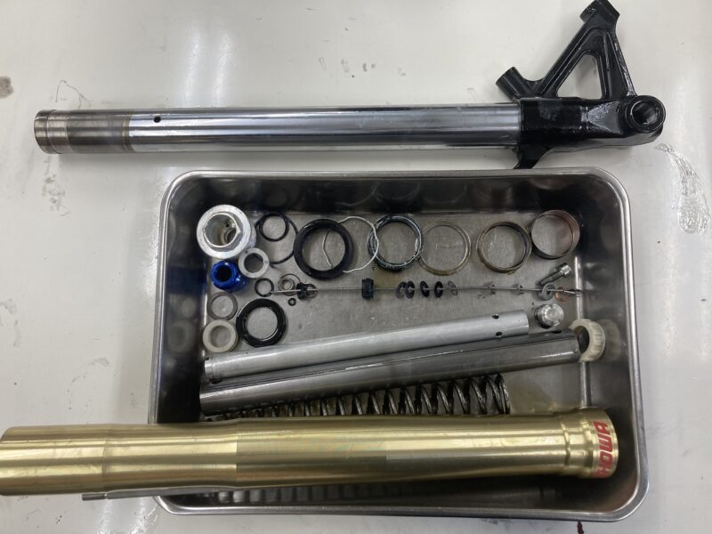 今回はSHOWA製倒立フロントフォークのフルメンテナンスをご依頼いただきました。