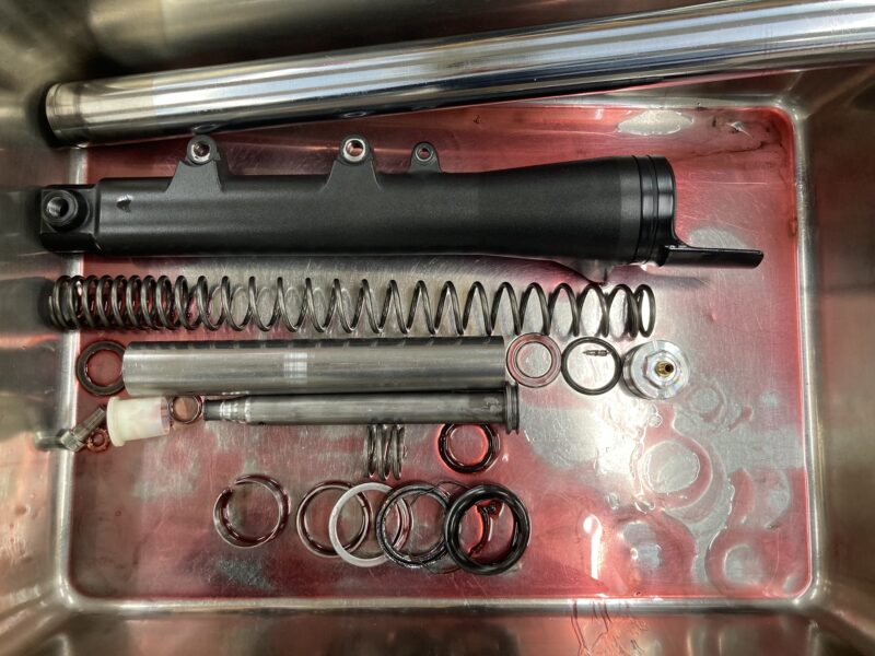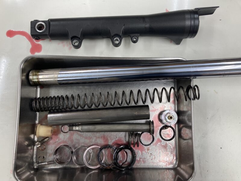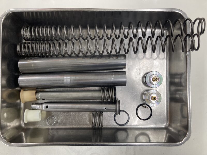 こちらがノーマルの「MEインナーカートリッジキット」のフロントフォークパーツ構成です