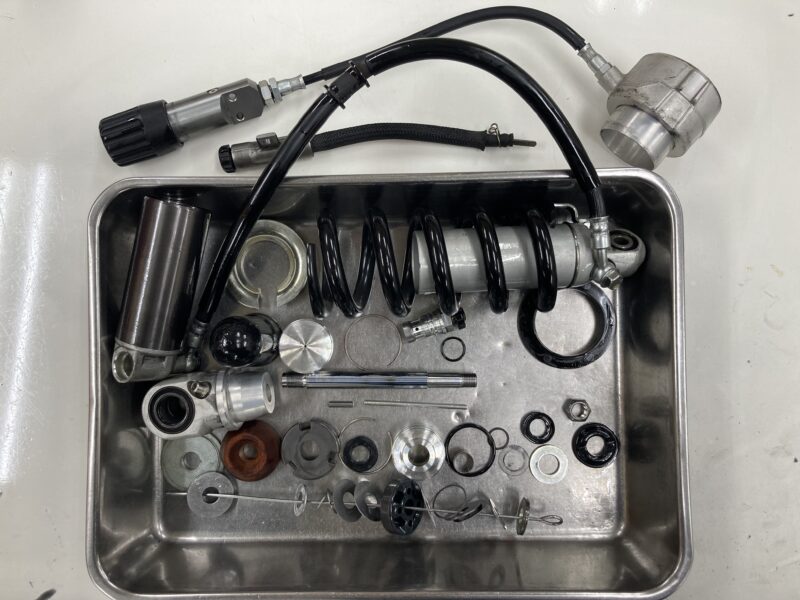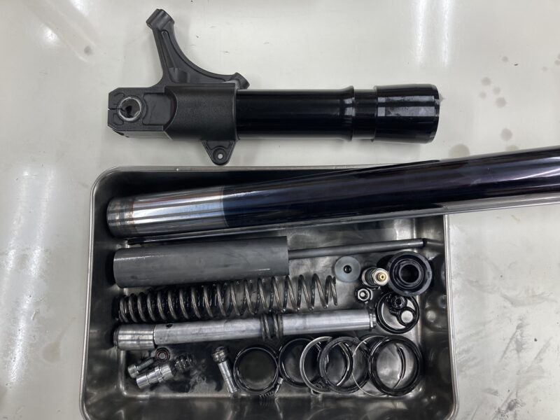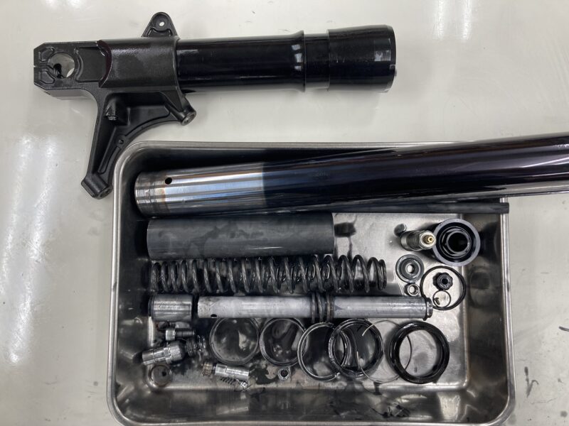 今回は前後サスペンションのMEダンピングチューニングによるセットアップをご依頼いただきました。フロントフォークには、0.90kgf/mのMEスーパースポーツスプリングを採用いたしました。